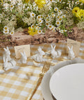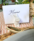 Our white ceramic namecard holder in bunny silhouette is a fresh take for adding modern sophistication to your Easter and springtime tabletop designs. These adorable little bunnies come in a set of six to accommodate everyone at the table. Simply hand write or print your name cards, and place them into the slots for the perfect tablescape finishing touch!